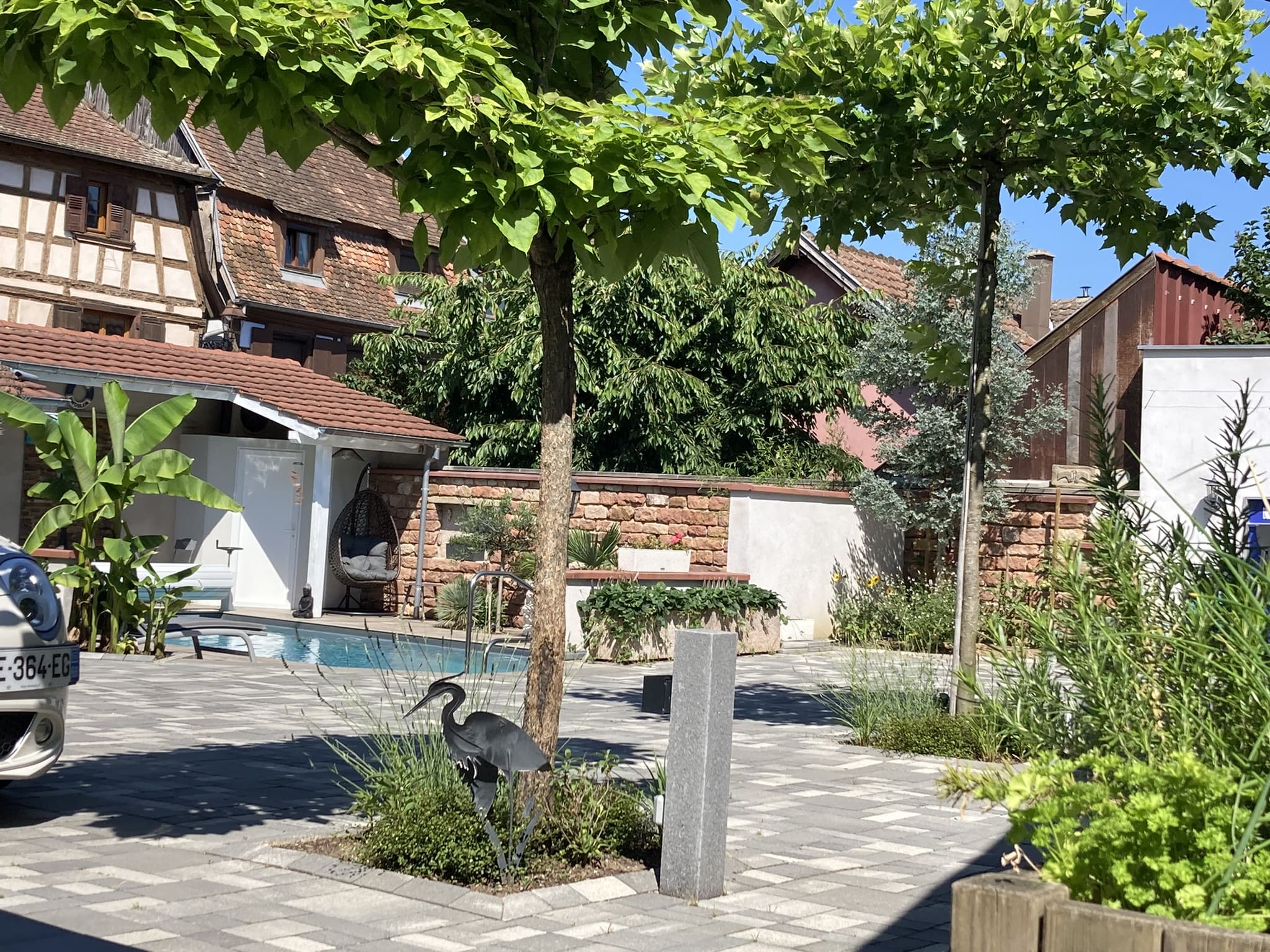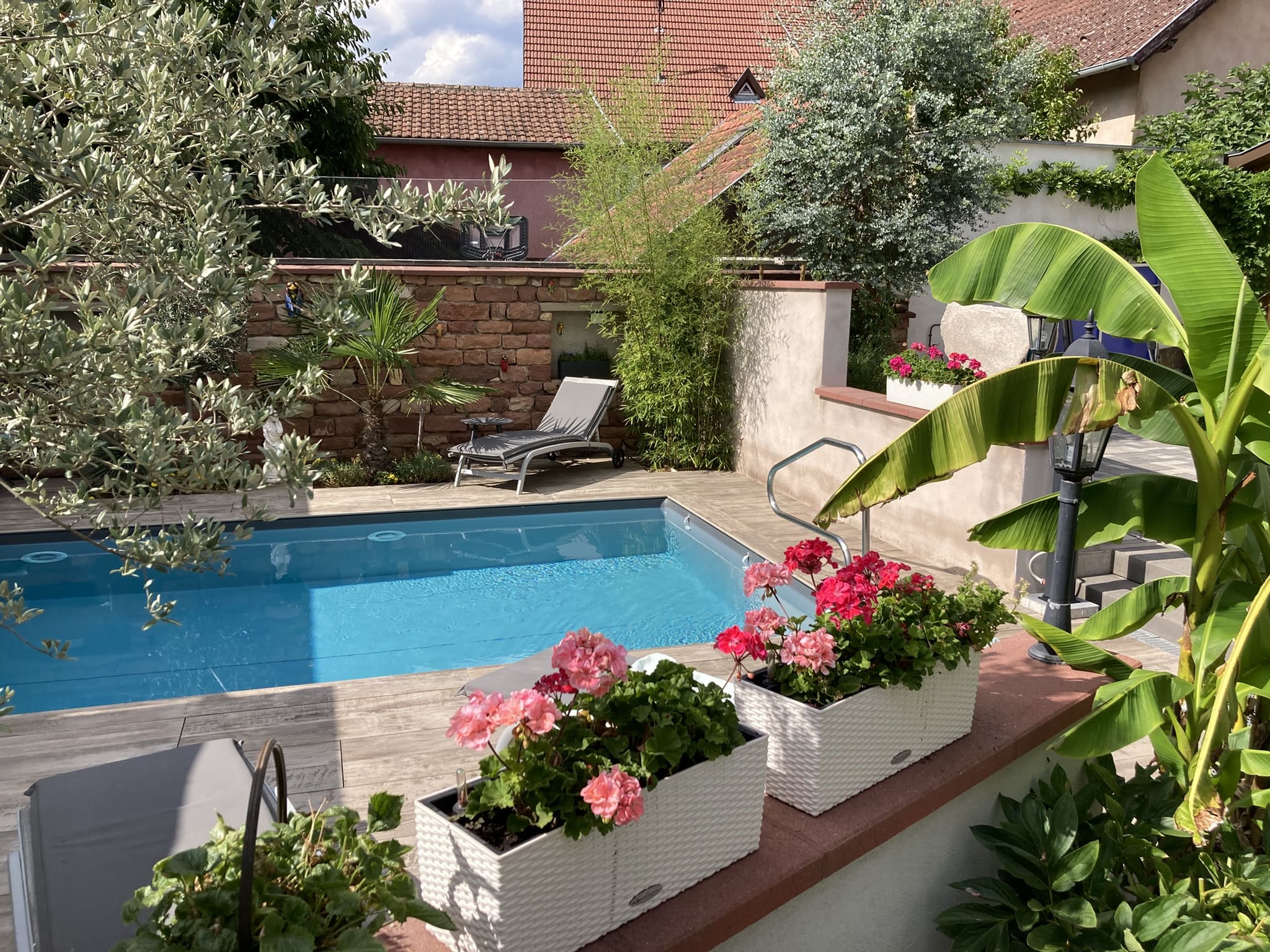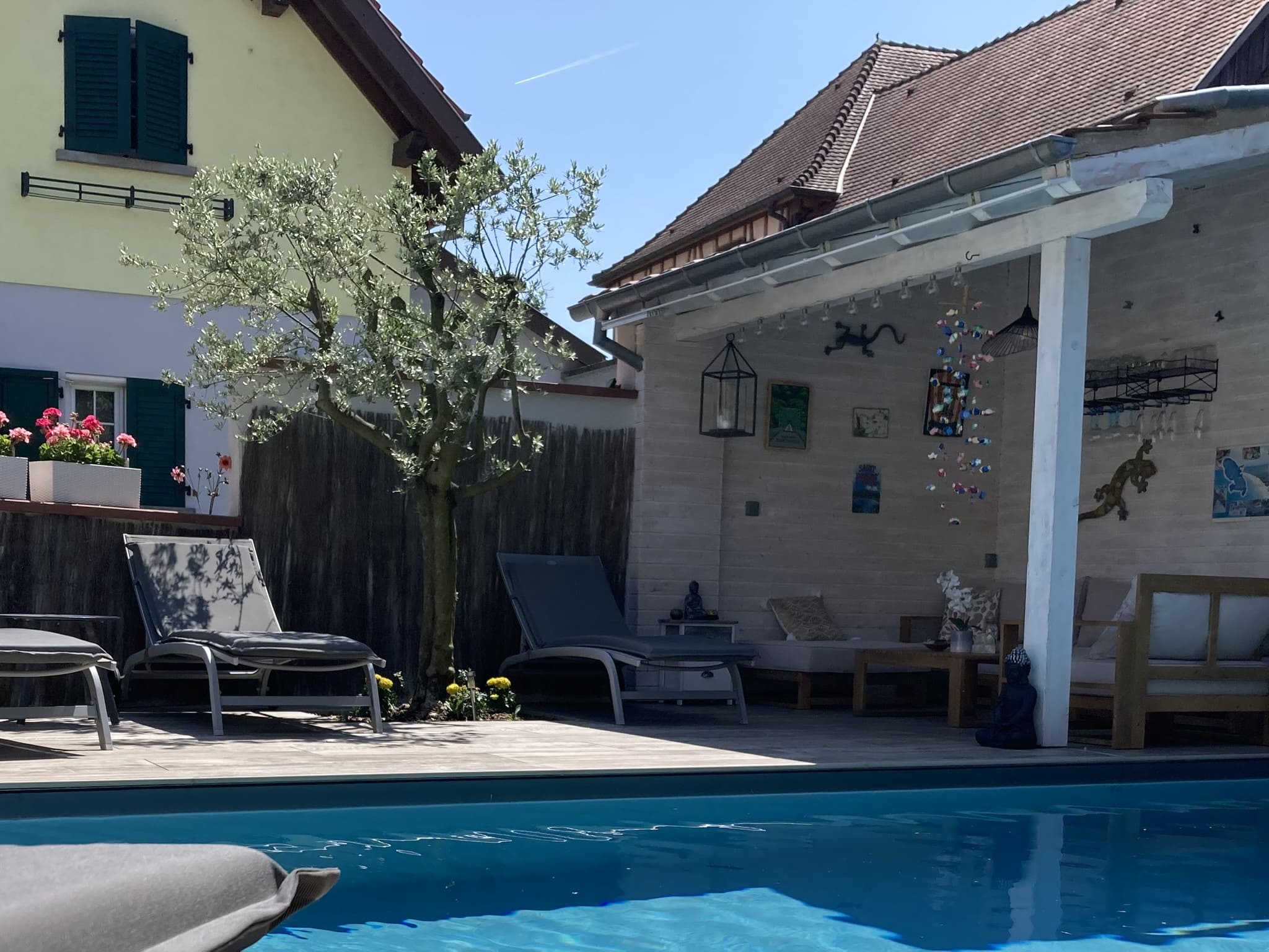 Nous mettons à votre disposition une location saisonnière en Alsace avec piscine chauffée partagée (7m/3,50m prof 1,40m) avec espace détente, idéale pour 2 à 3 personnes.