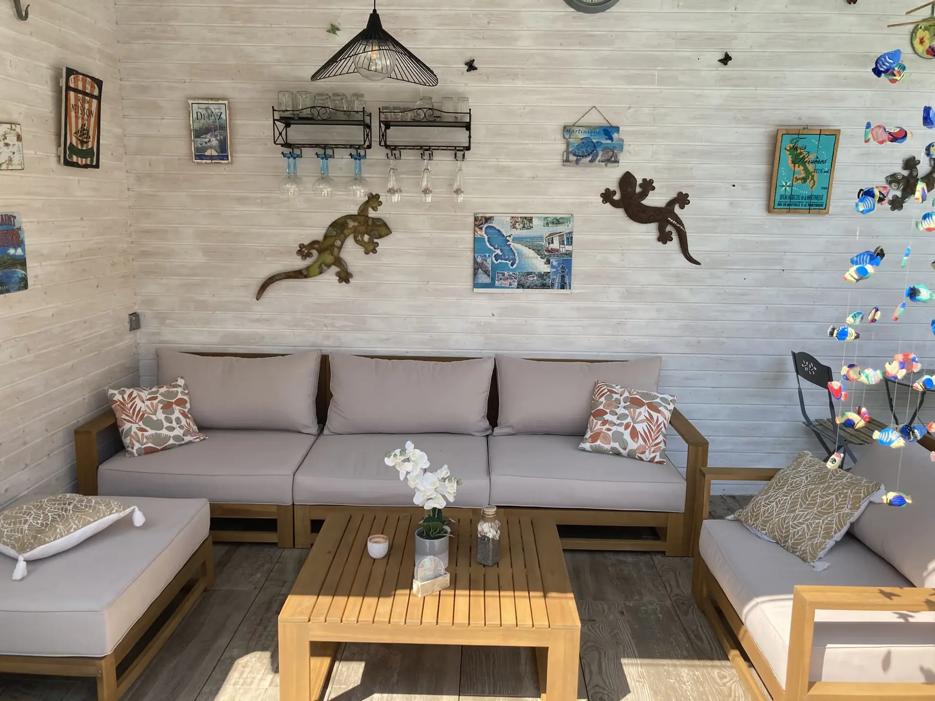 . 1 salon équipé d’un canapé convertible pour 2 personnes et d’une télévision.
